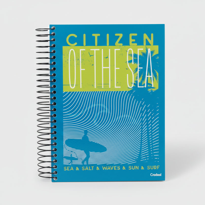Encadernação em espiral metálico — facilita a abertura completa do caderno.