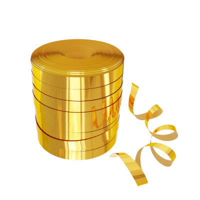 Material: Plástico com laminação metalizada (plástico + camada metalizada) — leve e fácil de manusear (similar ao usado em fitilhos de decoração)