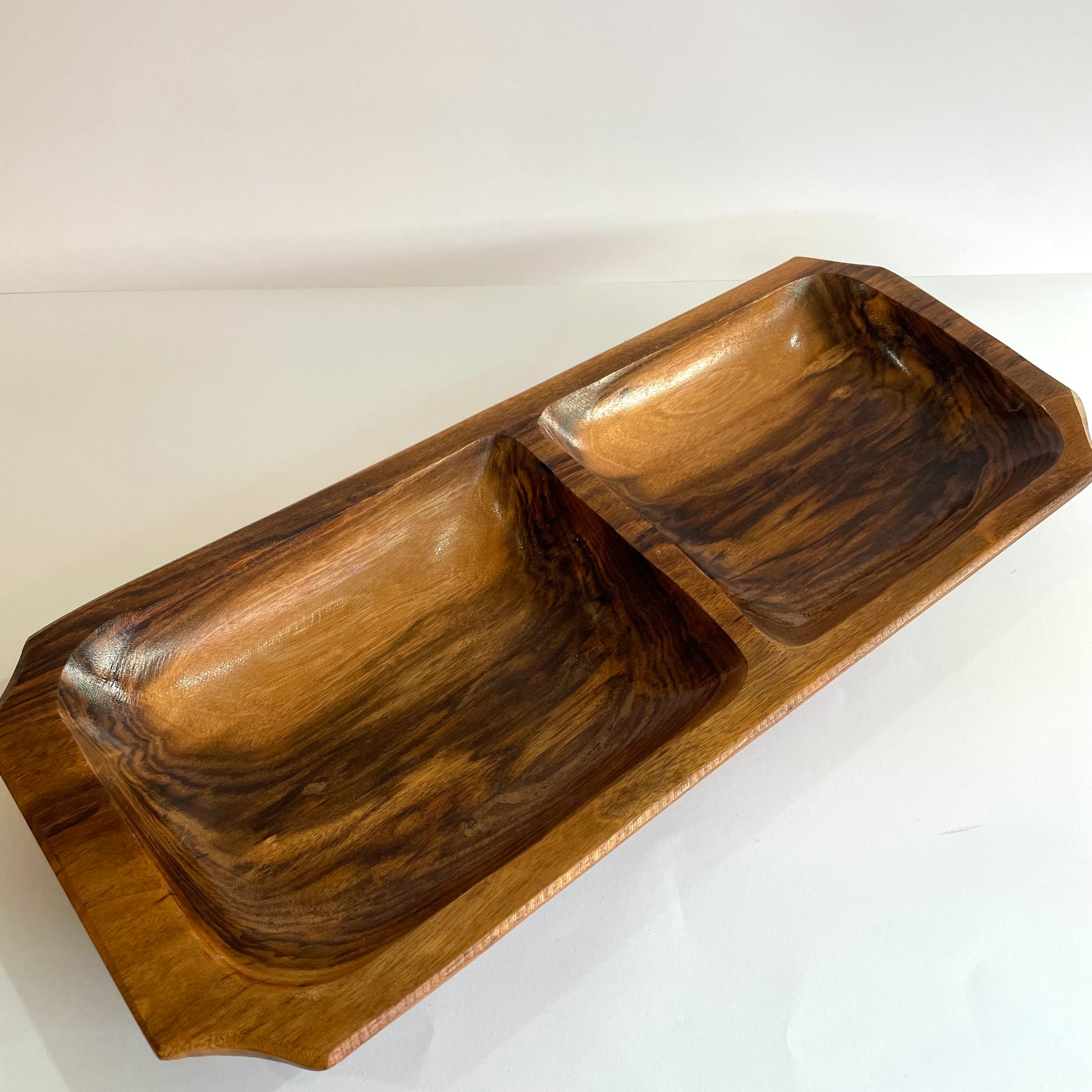 Gamela Rústica de Madeira com 2 Divisórias – Artesanal e Decorativa