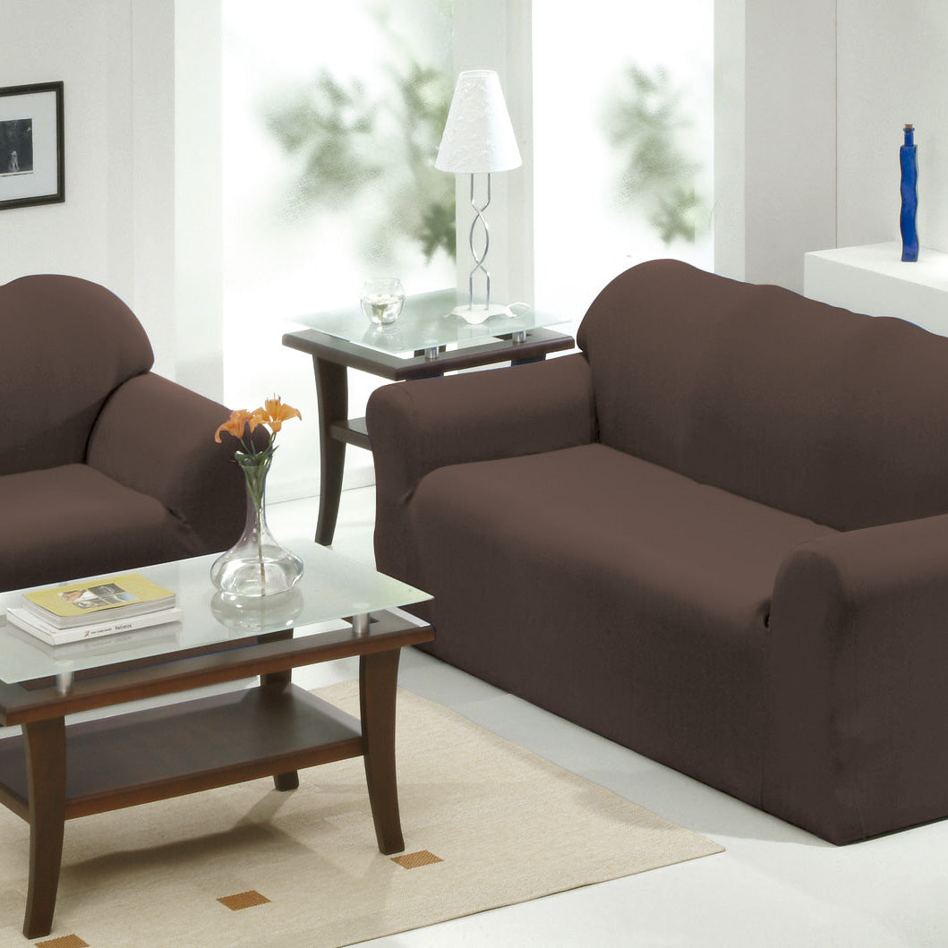 Kit Capa de Sofá 2 e 3 Lugares PanoSul “Requinte” – Malha Gel 100% Poliéster | 3-lug (2,20 m × 1,00 m) + 2-lug (1,65 m × 1,00 m) – Cores Tabaco / Cáqui