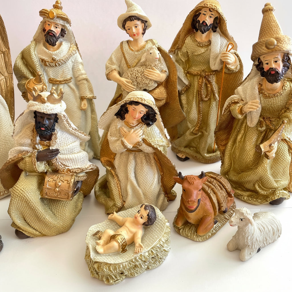 Conjunto completo: Inclui 11 peças que contam a história do nascimento com riqueza de detalhes.