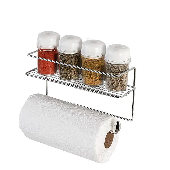 Suporte para Condimentos + Papel Toalha Niquelart 124 – Aço Cromado, Fixação de Parede, 32 × 26 × 17 cm