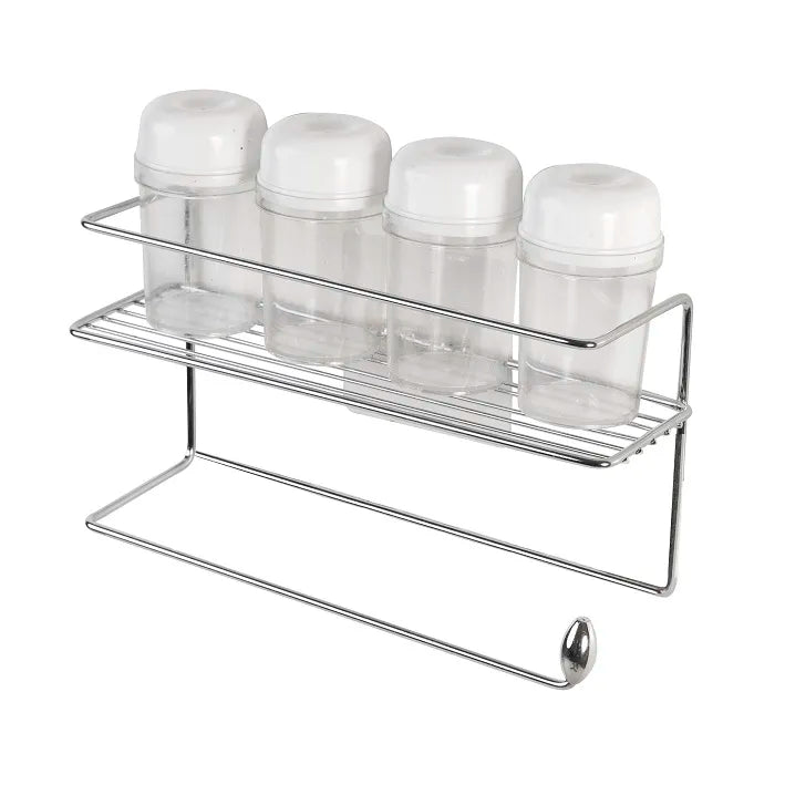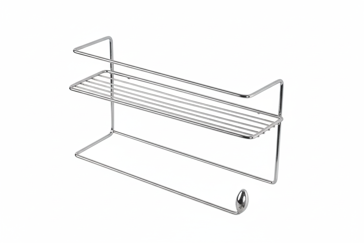 Transforme a organização da sua cozinha com estilo e praticidade. O suporte Niquelart 124 reúne suporte para condimentos e rolo de papel-toalha em um único produto, com design funcional de parede que libera espaço na bancada. Perfeito para quem busca praticidade e acabamento sofisticado em aço cromado.