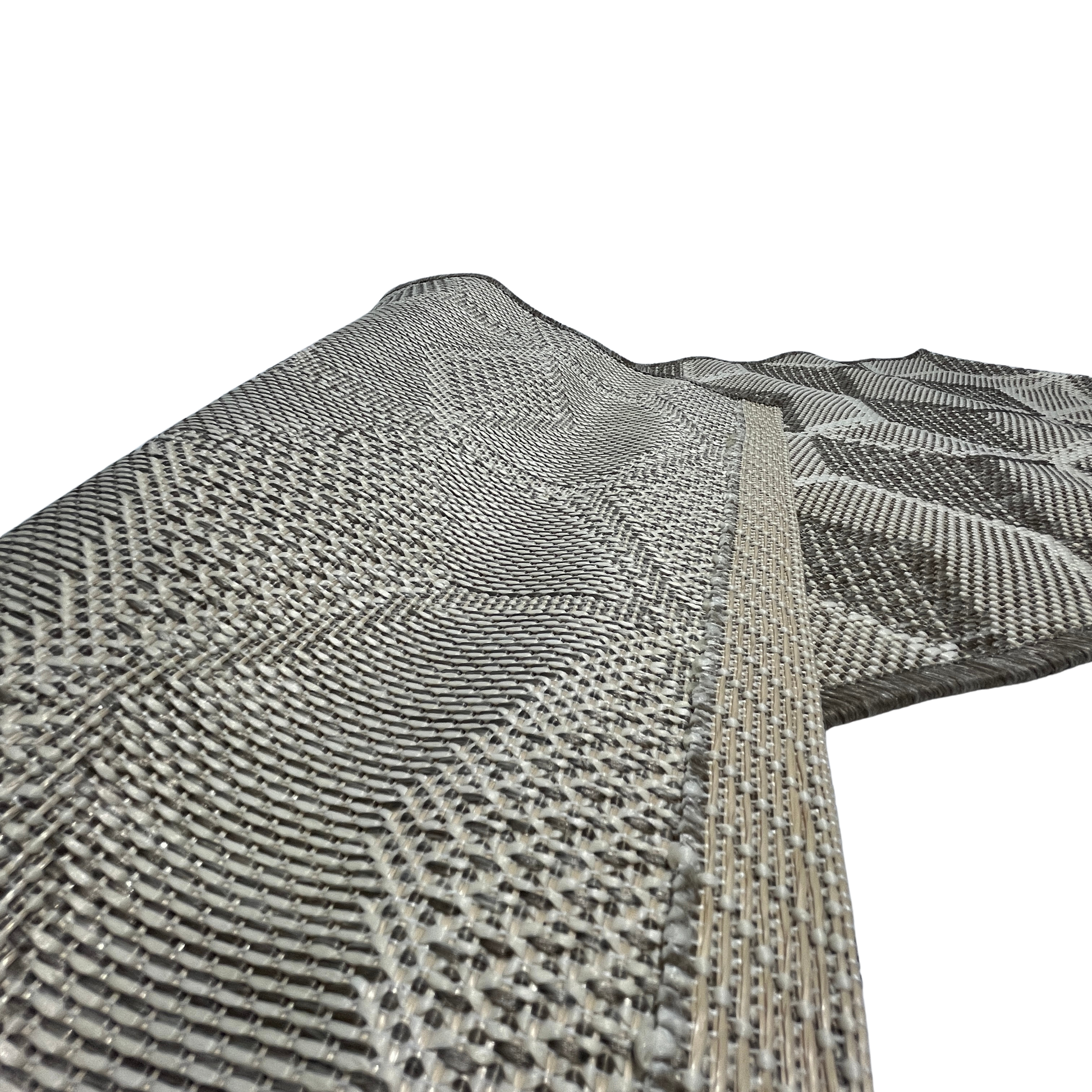 Este tapete de 50cm x 1,00m é perfeito para áreas externas. Confeccionado em 100% polipropileno, é resistente e possui um belo design geométrico. Com ele, você terá um ambiente elegante e funcional ao mesmo tempo.