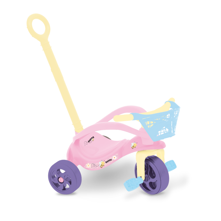 1 Triciclo Abelhinha com empurrador, proteção/cercado e cestinha.