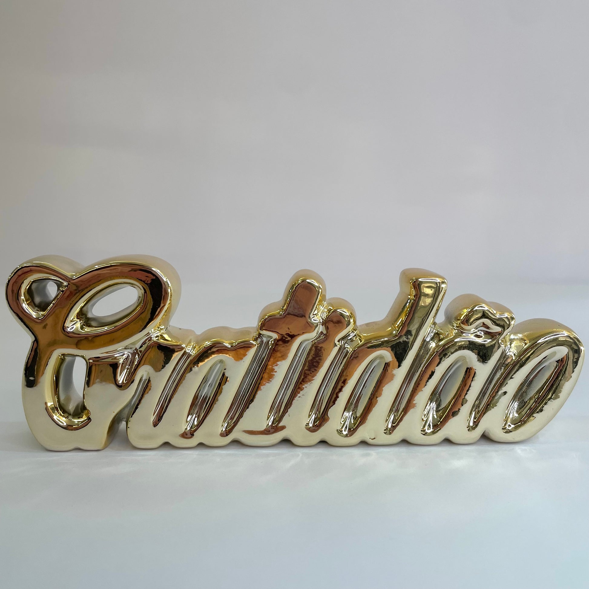 Design minimalista e moderno: A assinatura em porcelana com acabamento dourado valoriza qualquer decoração com sofisticação.